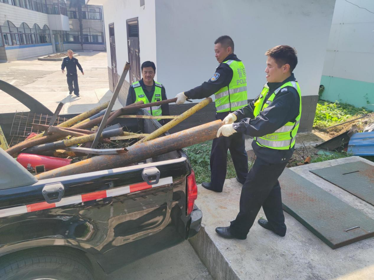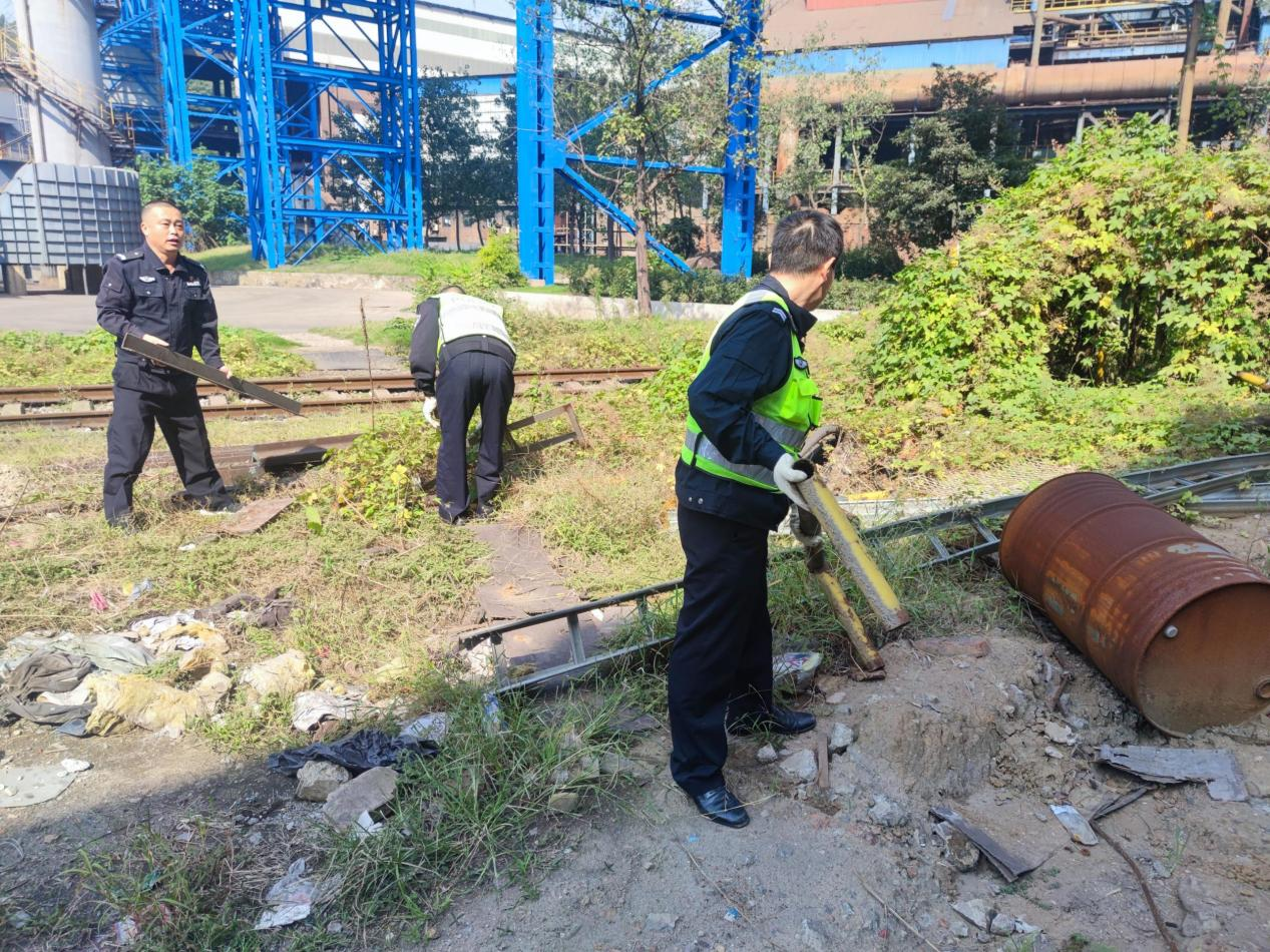 馬鋼保衛部交管巡邏隊員工作之餘回收廢鋼資源