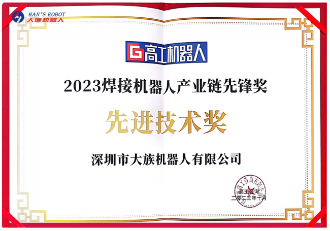 大族機器人憑借在協作型焊接機器人領域的持續創新,斬獲“2023焊接機器人產業鏈先鋒獎——先進技術獎”,成為引領協作型焊接機器人向前發展的關鍵力量之一。