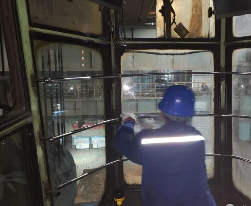 煉鋼廠運行車間職工抓住檢修期間天車未滿負荷運行的空檔期,對加料跨4號(hao)天(tian)車(che)進(jin)行(xing)大(da)清(qing)洗(xi)。普(pu)通(tong)清(qing)洗(xi)劑(ji)不(bu)能(neng)滿(man)足(zu)去(qu)汙(wu)要(yao)求(qiu),那(na)就(jiu)自(zi)購(gou)強(qiang)力(li)去(qu)汙(wu)劑(ji),人(ren)手(shou)不(bu)夠(gou),那(na)就(jiu)發(fa)動(dong)骨(gu)幹(gan)犧(xi)牲(sheng)休(xiu)息(xi)時(shi)間(jian)。從(cong)天(tian)車(che)駕(jia)駛(shi)室(shi)每(mei)塊(kuai)玻(bo)璃(li)到(dao)每(mei)個(ge)細(xi)小(xiao)按(an)鈕(niu),他(ta)們(men)都(dou)認(ren)真(zhen)清(qing)理(li),直(zhi)到(dao)每(mei)塊(kuai)玻(bo)璃(li)變(bian)得(de)通(tong)透(tou)明(ming)晰。曾經的“髒老大”重整衣裝,在新的一年裏繼續服務好每一爐“鋼水”。幹淨整潔的環境也能讓天車操作更安全。(晏芳 顧芳 徐倩 李媛 桂多)