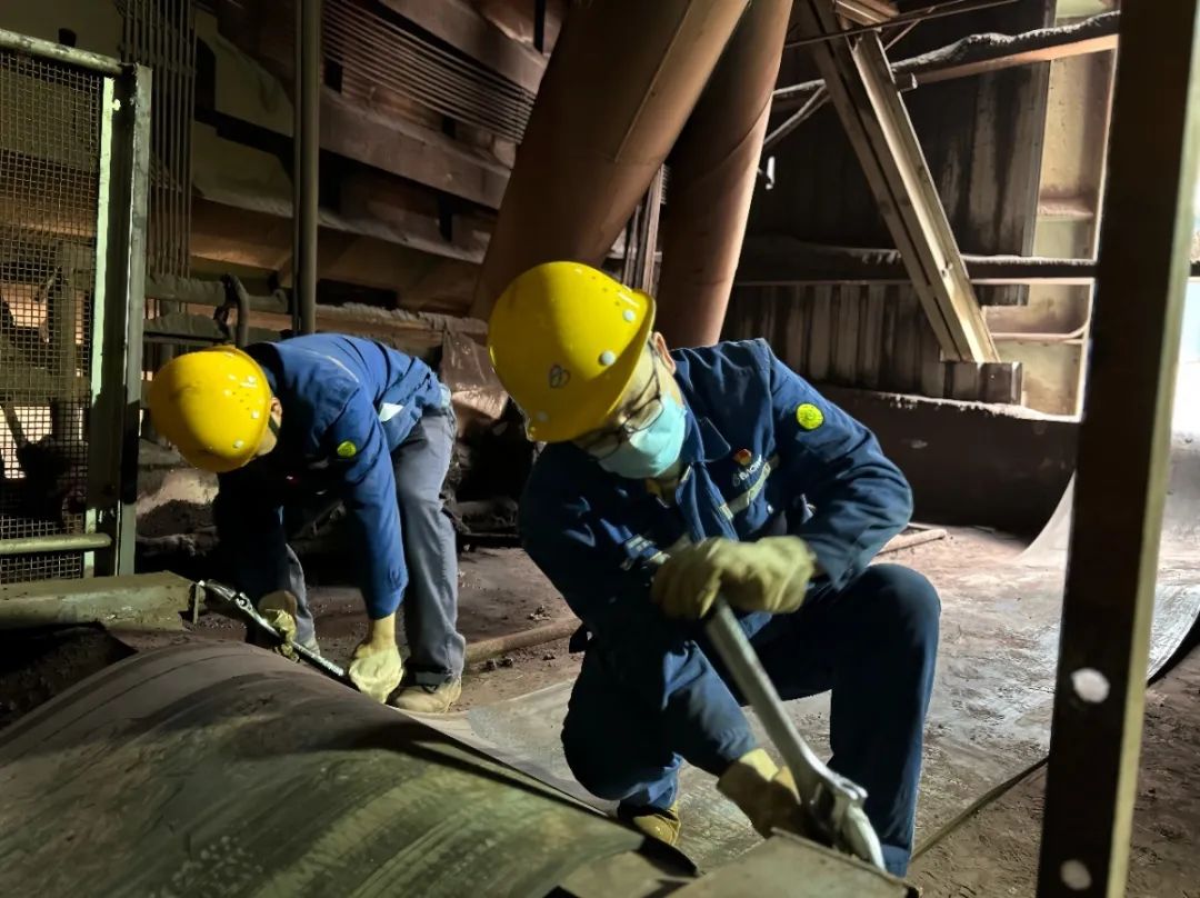 許高敏、張明鵬和輪班主要操作員工帶領的托輥、擋皮更換隊也(ye)踏(ta)入(ru)了(le)檢(jian)修(xiu)的(de)戰(zhan)場(chang)。他(ta)們(men)麵(mian)臨(lin)的(de)是(shi)一(yi)場(chang)與(yu)時(shi)間(jian)和(he)困(kun)難(nan)較(jiao)量(liang)的(de)硬(ying)仗(zhang)。現(xian)場(chang),交(jiao)叉(cha)作(zuo)業(ye)頻(pin)繁(fan)得(de)如(ru)同(tong)繁(fan)忙(mang)的(de)交(jiao)通(tong)樞(shu)紐(niu),各(ge)係(xi)列(lie)檢(jian)修(xiu)人(ren)員(yuan)都(dou)在(zai)緊(jin)張(zhang)地(di)忙(mang)碌(lu)著(zhe)。皮(pi)帶(dai)機(ji)架(jia)改(gai)造(zao)占(zhan)據(ju)了(le)寶(bao)貴(gui)的(de)空(kong)間(jian),使(shi)得(de)作(zuo)業(ye)區(qu)域(yu)變(bian)得(de)狹(xia)窄(zhai)而(er)擁(yong)擠(ji)。在(zai)這(zhe)樣(yang)的(de)環(huan)境(jing)下(xia),他(ta)們(men)需(xu)要(yao)對(dui)P302、H302、H303皮帶上共計1100個破損托輥、30擋支架進行更換,同時還要全麵更換P302、H302、D303、F311這四條皮帶。