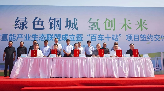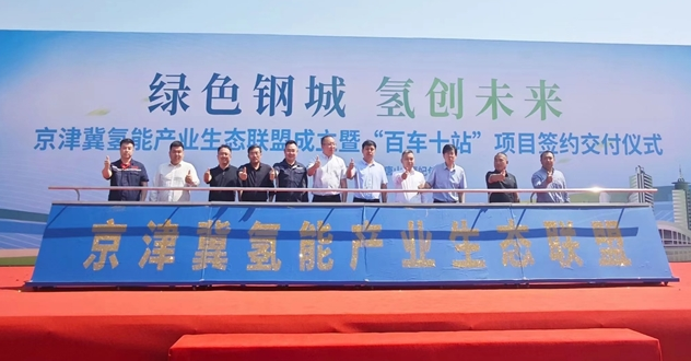 5月28日,“綠色鋼城,氫創未來——京津冀氫能產業生態聯盟成立暨‘百車十站’項目簽約交付儀式”在唐山曹妃甸舉行,通過整合產業鏈各方的資源優勢,促進氫能技術的突破和應用,培育氫能產業新質生產力,構建協同創新、互利共贏的氫能產業生態體係,推動京津冀氫能產業集群化協同發展。