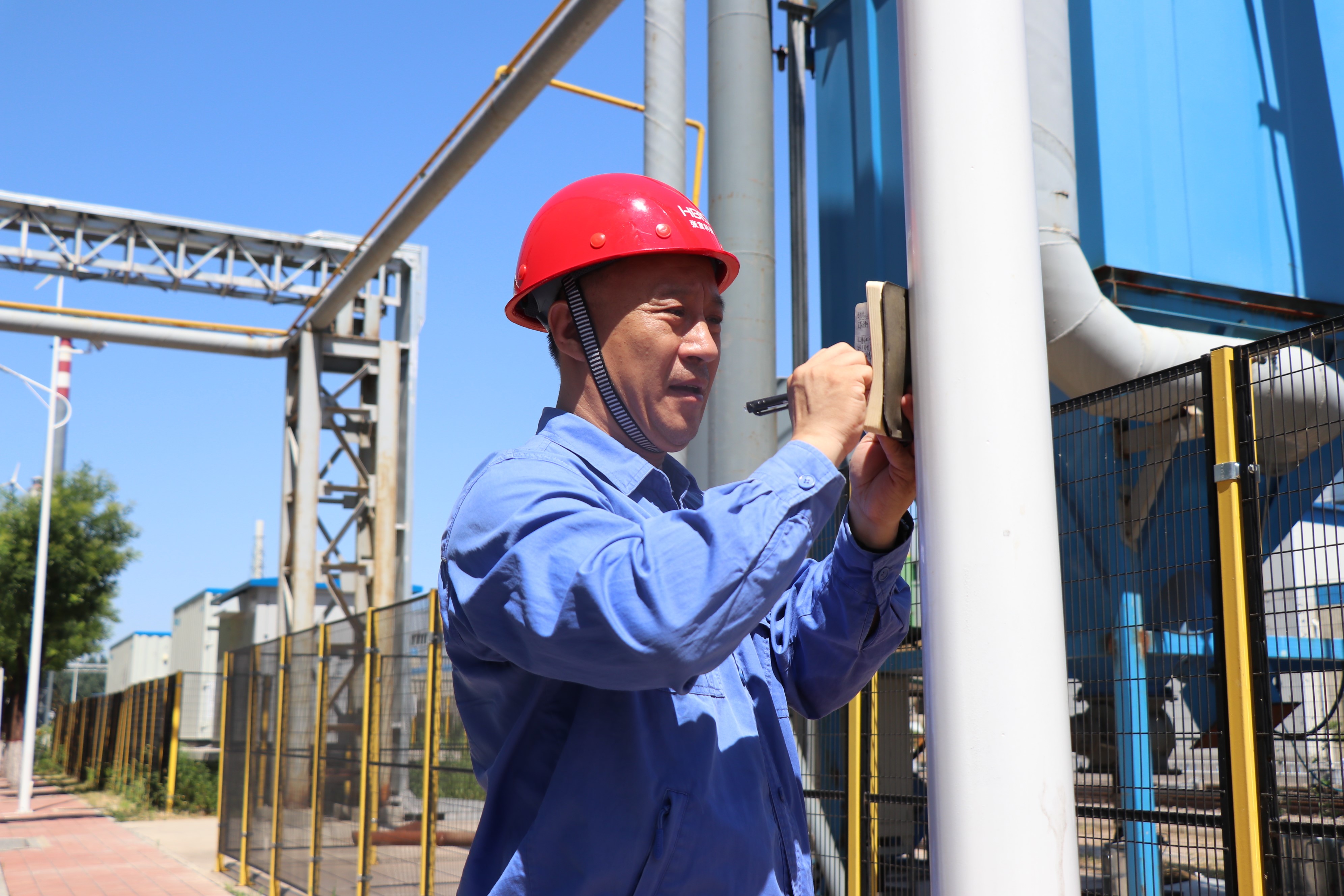 冶金科技公司職工正在對廠區外圍配套設備進行點檢,保障高溫條件下設備工況穩定