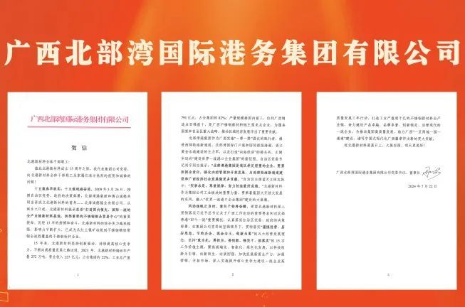7月23日,北部灣港旗下北港新材料在北海舉行成立十五周年主題活動大會,該集團公司黨委書記、董事長周少波發來賀信,表示熱烈祝賀。北海市副市長、黨組成員孫環誌,中國鋼鐵工業協會不鏽鋼分會執行會長張誌方,集團公司副總經理、北港新材料公司黨委書記、董事長潘料庭出席活動。