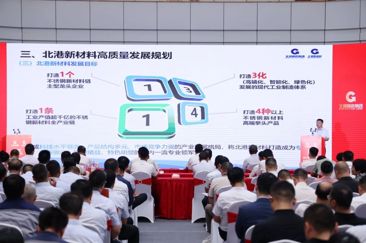 大會希望北港新材料持續提升核心競爭力,用新質生產力推動不鏽鋼產業智能化、綠色化、集群化發展,在新的形勢和市場環境下,堅持開拓創新,奮力走好高質量發展三年行動之路,為打造千億不鏽鋼產業園目標、服務北部灣港集團改革發展交出一份滿意的答卷。