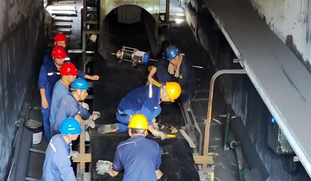 在更換現場,職工們個個都卯足了勁,加班加點隻為能快點完成檢修任務。據了解,運焦皮帶的維保業務回歸,每月可節約7.4萬元。