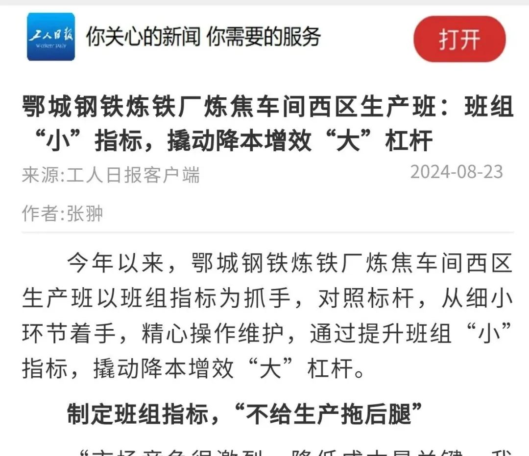 工人日報--《班組“小”指標,撬動降本增效“大”杠杆》