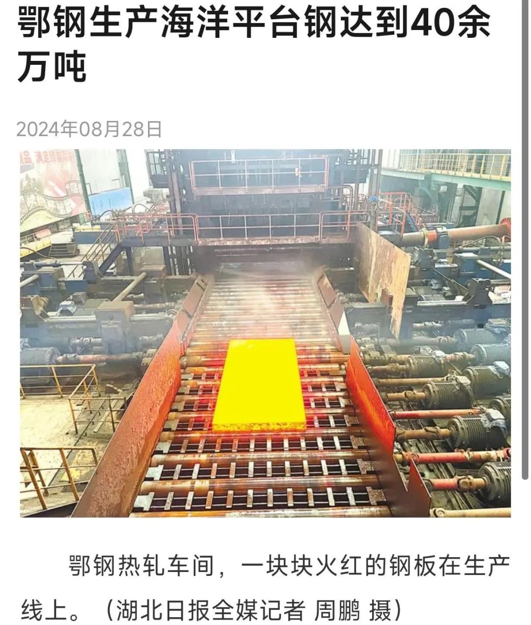 湖北日報--《鄂鋼生產海洋平台鋼達40餘萬噸》