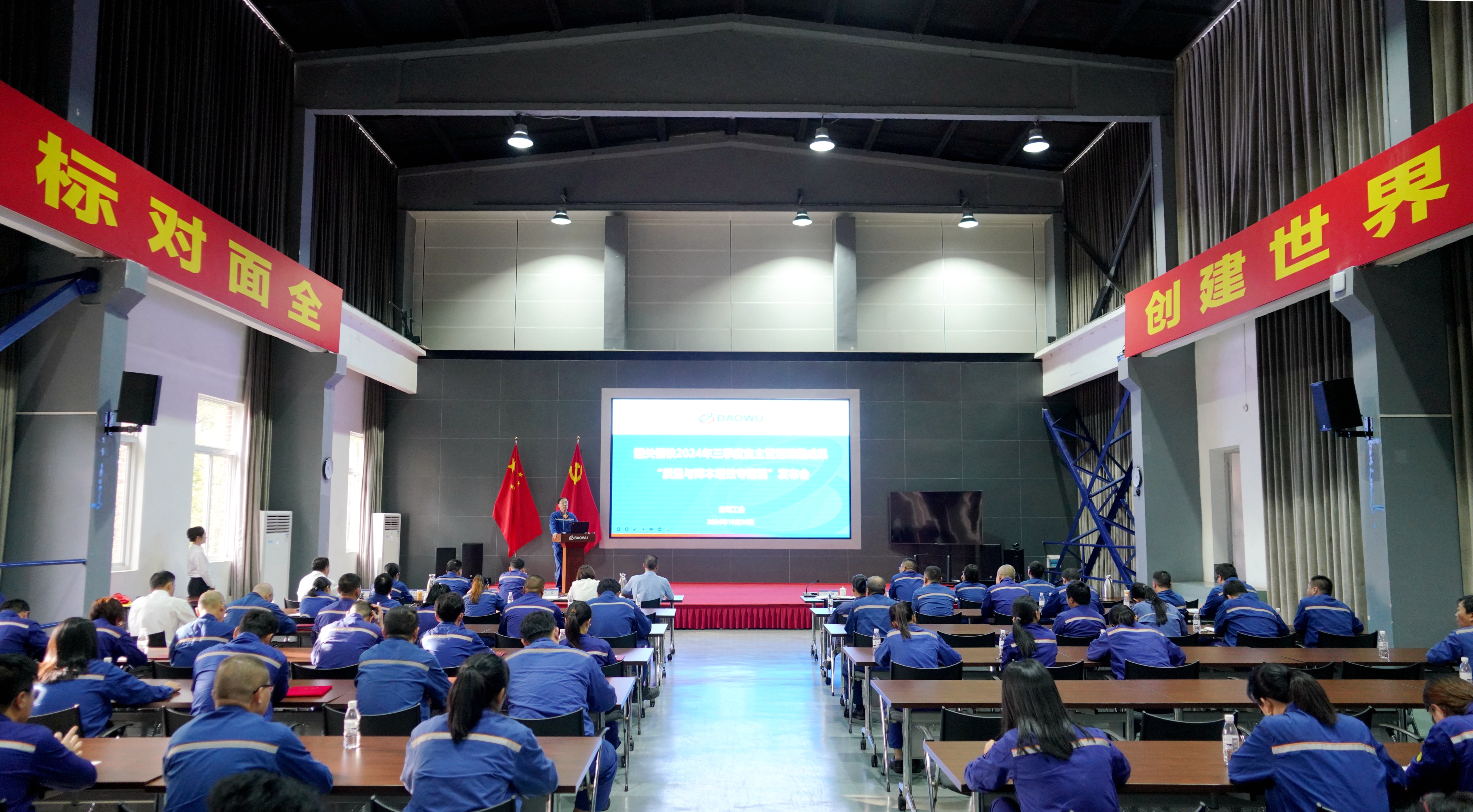 10月30日,寶武集團中南股份舉行2024年三季度自主管理課題成果“質量與降本增效專題篇”發布會。中南鋼鐵黨委副書記,中南股份總裁、黨委副書記蘭銀;中南鋼鐵(股份)工會主席曠高峰;財務部、製造管理部、運營改善部等部門負責人;各二級單元工會主席、自主管理活動主推人、全員降本增效專項勞動競賽推進人、“質量月”活動主管領導、自主管理主推人等參加發布會。
