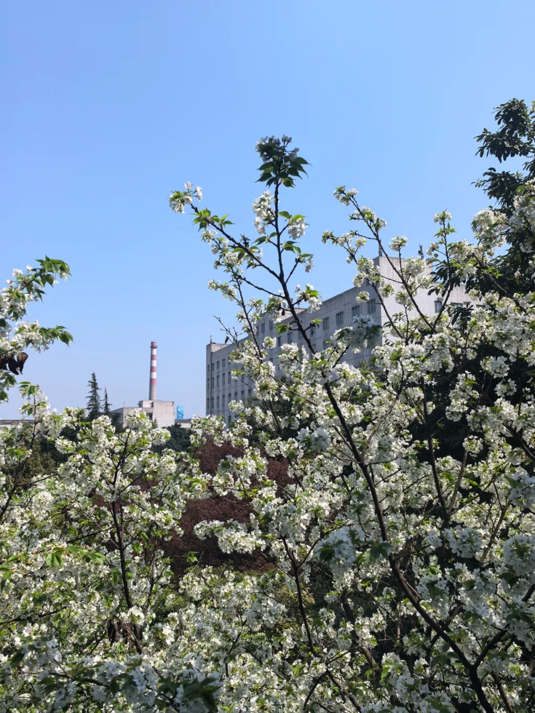 三月春風裏,重慶鋼鐵廠區的櫻花開得恣意,花簇與高爐的鋼鐵線條相映成趣。