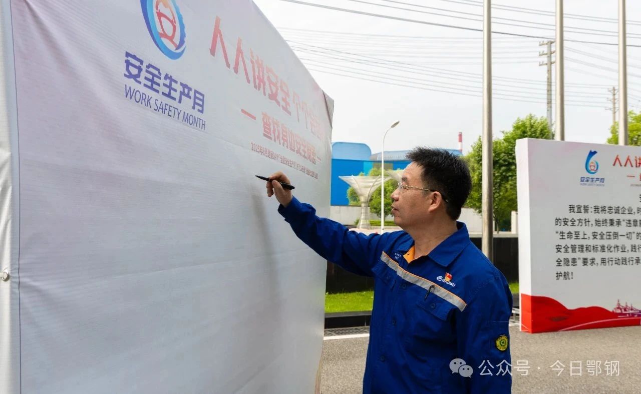 在全國第24個“安全生產月”活動開展之際,6月6日,鄂城鋼鐵公司以“人人講安全,個個會應急—查找身邊安全隱患”為主題,舉行安全生產月宣誓。該公司領導,各單位、部門相關負責人,在鄂五元單位負責人參加宣誓。