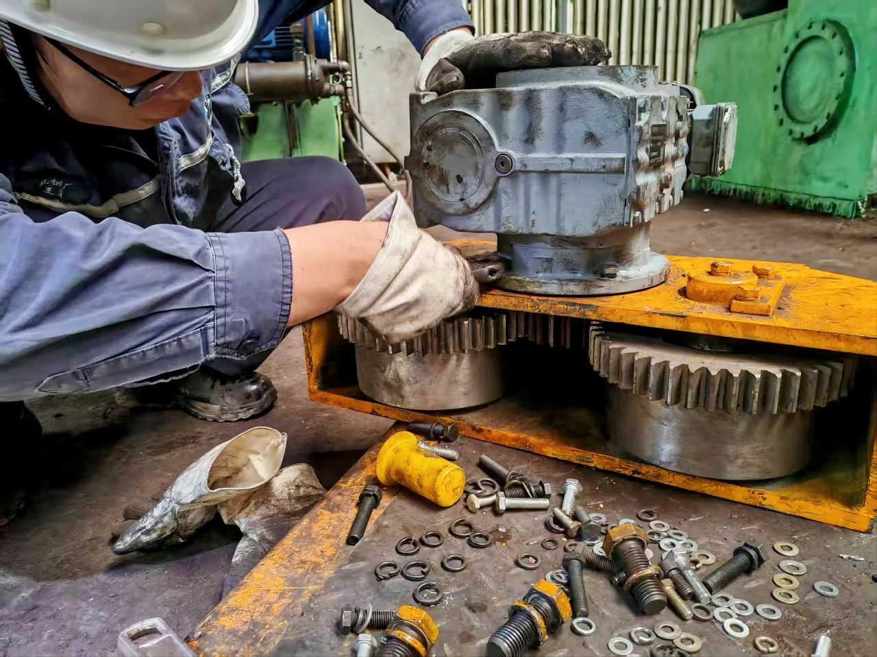 “不能再這樣下去了,必須盡快找到解決辦法!”班(ban)組(zu)成(cheng)員(yuan)曾(zeng)科(ke)暗(an)暗(an)下(xia)定(ding)決(jue)心(xin),利(li)用(yong)停(ting)機(ji)時(shi)間(jian)在(zai)狹(xia)窄(zhai)的(de)設(she)備(bei)間(jian)隙(xi)仔(zai)細(xi)查(zha)看(kan)電(dian)機(ji)固(gu)定(ding)裝(zhuang)置(zhi)的(de)每(mei)一(yi)個(ge)細(xi)節(jie),最(zui)後(hou)經(jing)過(guo)與(yu)班(ban)組(zu)其(qi)他(ta)成(cheng)員(yuan)多(duo)次(ci)商(shang)定(ding)探(tan)討(tao)確(que)定(ding)了(le)方(fang)案(an)——原有齒輪座和電機一側加裝三塊板連接,對裝置進行固定。改造後的電機固定機構猶如給懸臂磁力吊裝上了一顆“穩定的心髒”,大幅減少了晃動和螺栓被剪斷的風險,為設備的穩定運行奠定了堅實基礎,同時節約備件費用約3.6萬元。