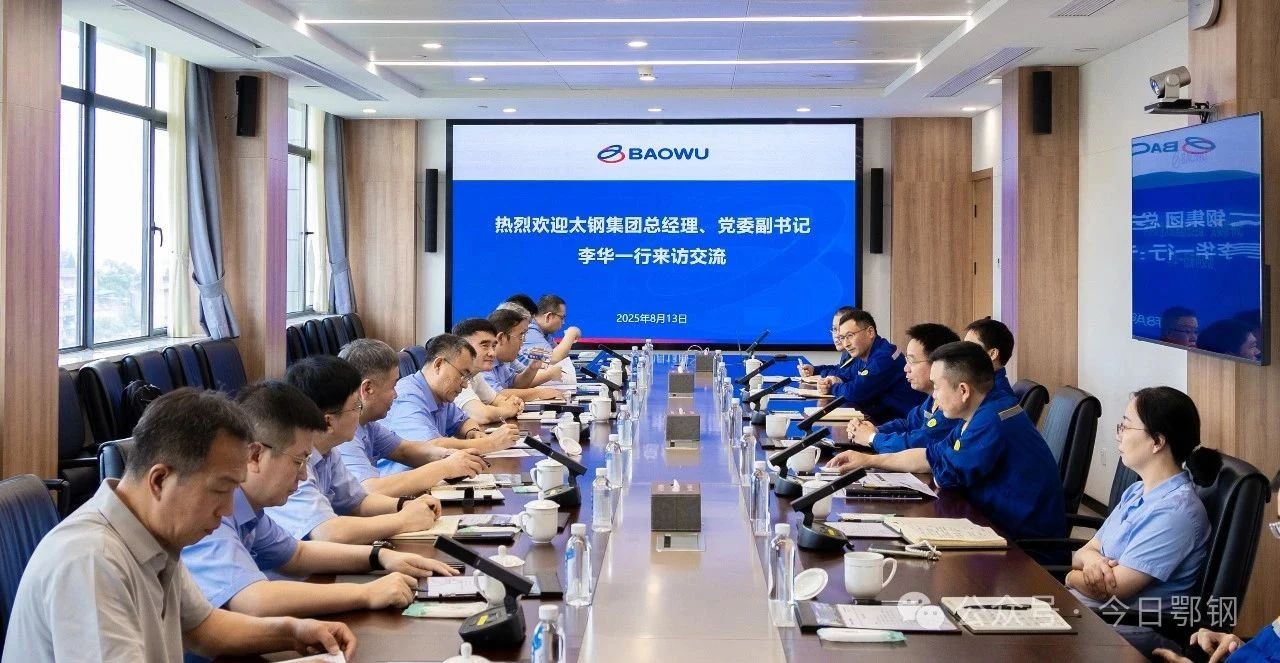 8月13日,太鋼集團總經理、黨委副書記李華帶領太鋼集團生產製造、設備、人資、運改等係統領導骨幹來鄂鋼對標交流。陸隆文、黃大軍等領導熱情接待。寶鋼德盛黨委書記、 董事長王清潔參加交流。