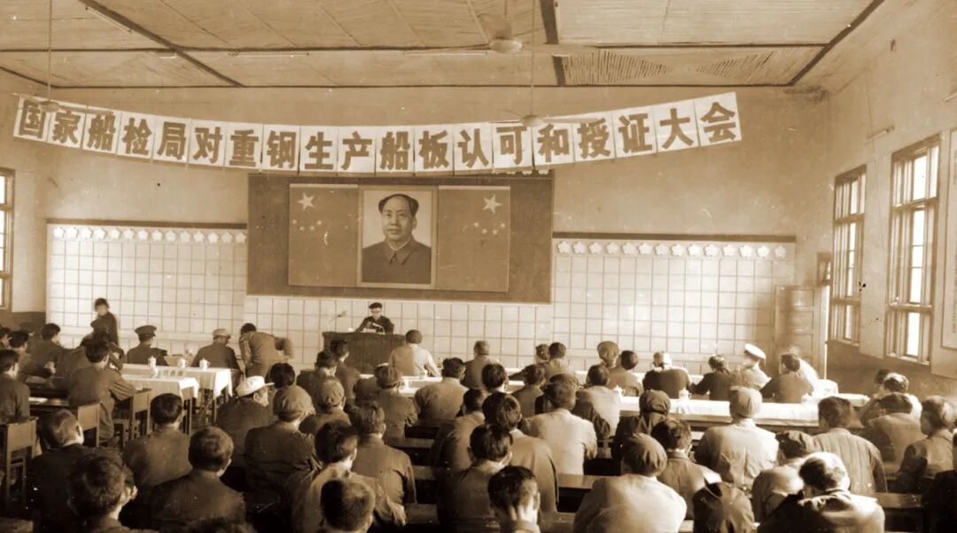 1982年3月國家船檢局對重鋼生產船板認可和授證大會