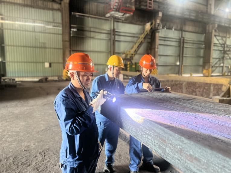 方大特鋼煉鋼廠組織人員對連鑄坯外觀質量進行檢查 謝媛 攝
