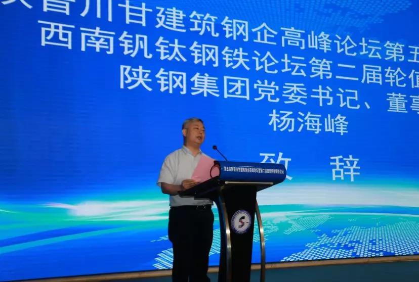 陝晉川甘建築鋼企高峰論壇理事長、第二屆西南釩鈦鋼鐵論壇理事長、陝鋼集團黨委書記、董事長楊海峰致辭.