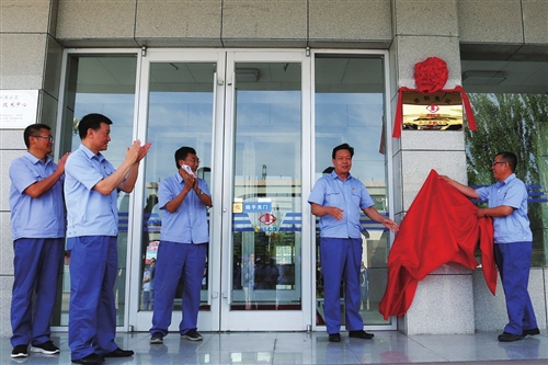 圖為集團公司黨委書記、董事長陳得信為氫冶金研究院揭牌。 張誌方 攝