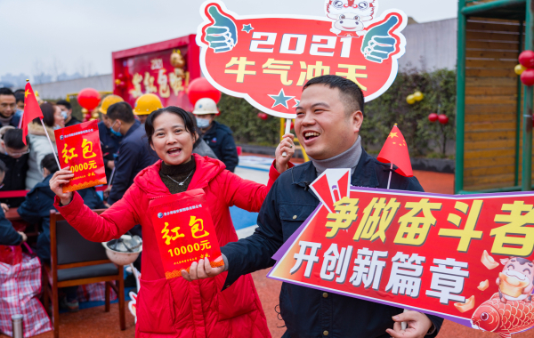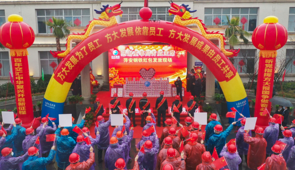 2021年2月1日,麵對疫情延續,方大萍安鋼鐵落實方大集團2021年度工作會議上提出的建議,為每位員工發放一萬元大紅包。一個個紅包點亮了一片“幸福紅”,延續著方大在疫情下的愛和溫暖。