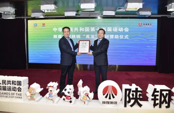 4月21日,陝煤集團陝鋼“禹龍”鋼材讚助第十四屆全國運動會儀式在西安舉行,陝鋼集團向十四運組委會讚助2000萬元鋼材,組委會向陝煤集團授予“十四運官方合作夥伴”牌匾。