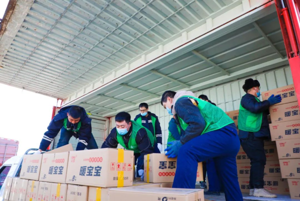 27日下午5點,榮程集團董事會主席張榮華下達全力以赴馳援災區的指示,榮程普濟公益基金會等多部門吹響抗疫“集結號”,迅速行動,展開了緊張有序的物資采購和調運工作。28日早晨9點30分,榮程普濟公益基金會連夜緊急調運的三批抗疫物資準時到達榮程智運卸貨點,榮程人不懼嚴寒,以最快速度完成了物資搬運和分裝。