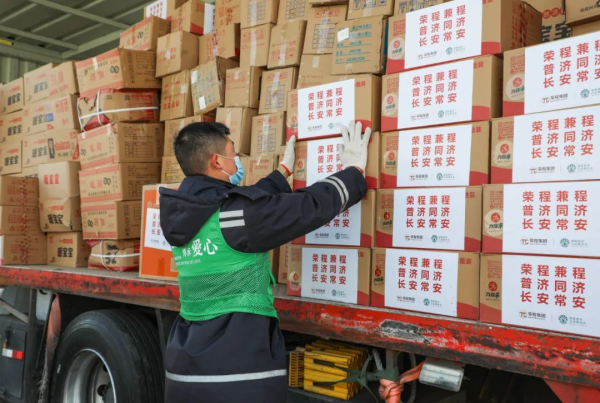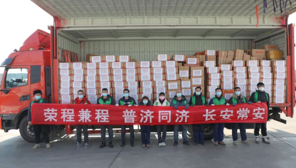 12月28日中午,榮程普濟公益基金會最新一批市場價值60萬元的抗疫物資乘榮程智運專車馬不停蹄奔赴陝西西安。