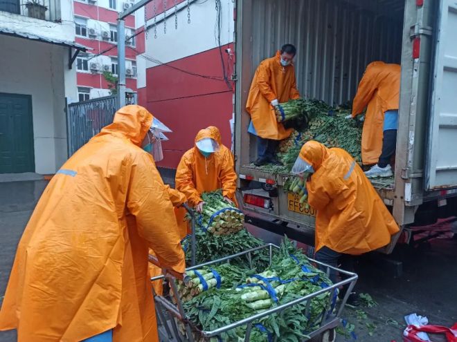 3月31日,在上海市疫情防控的吃勁階段和關鍵時刻,中國十七冶集團緊急馳援上海寶山區3萬餘斤蔬菜全部抵達。