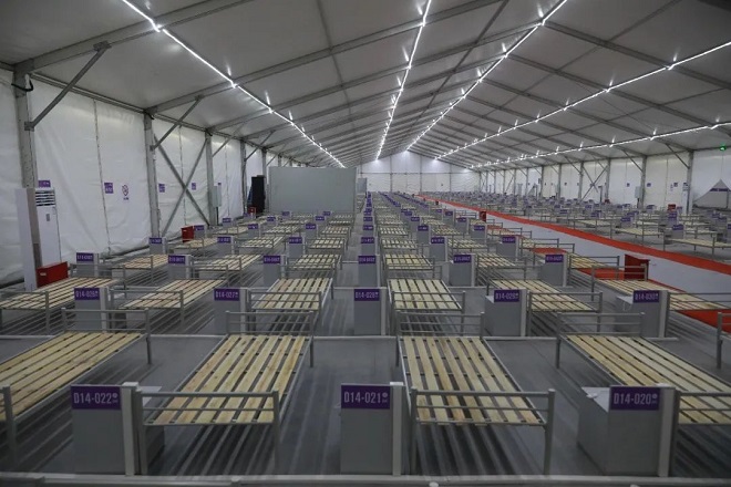 完成6座方艙醫院的鋼結構框架及艙棚建設