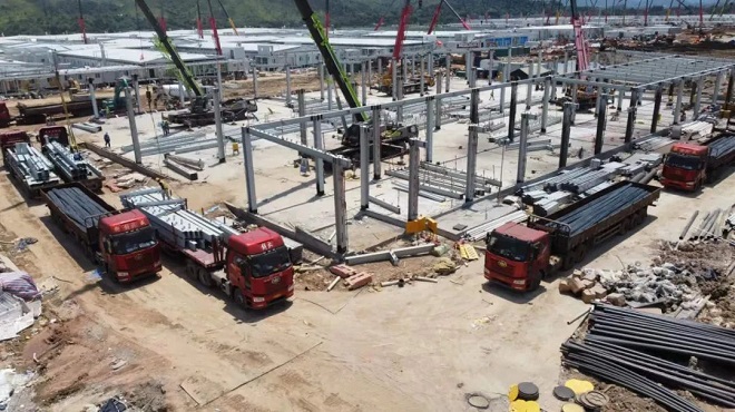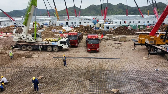 援建香港應急醫院項目是國家有關部委協助香港抗疫的重點工作,3月開始建設,一期總建築麵積約2.84萬平方米,醫院及附屬配套設施箱體4109個。醫院建成後,將有效提升香港收治新冠肺炎確診患者的能力。此次援港應急醫院項目由中建科工總承包(EPC),中建集團援港抗疫工作專班全程支持。韶鋼鬆山是鋼材供應的源頭企業,使命光榮,責任重大。