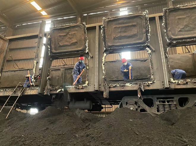 能源科技火車卸清車機出現故障告急,武安本級黨委班子當即趕赴卸車一線,協調機關部室、管控中心、實業部人員力量,嚴格落實安措交底,全力幫扶清車工作。各部門第一時間組織黨員突擊隊,在這場“愚公移山”的無畏征程中迎難而上、在這場堅守初心使命的保供會戰中全力奮戰。鍬鏟紛飛、汗雨揚灑,煤粉黢黑了他們的臉龐,但掩蓋不住他們一心一意保生產的毅勇之心。短短兩日,庫內車皮清運工作全部完成!