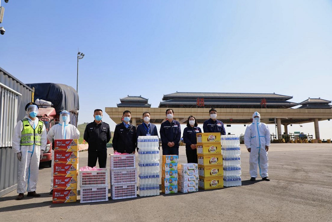 溫暖“疫”線(xian),公(gong)司(si)向(xiang)高(gao)速(su)卡(ka)口(kou)防(fang)疫(yi)一(yi)線(xian)工(gong)作(zuo)人(ren)員(yuan)捐(juan)贈(zeng)物(wu)資(zi),義(yi)無(wu)反(fan)顧(gu)地(di)伸(shen)出(chu)援(yuan)助(zhu)之(zhi)手(shou)捐(juan)贈(zeng)防(fang)疫(yi)物(wu)資(zi),以(yi)實(shi)際(ji)行(xing)動(dong)表(biao)達(da)對(dui)一(yi)線(xian)防(fang)疫(yi)人(ren)員(yuan)的(de)慰(wei)問(wen)和(he)感(gan)謝(xie),踐(jian)行(xing)社(she)會(hui)責(ze)任(ren)與(yu)擔(dan)當(dang),傳(chuan)遞(di)防(fang)疫(yi)正(zheng)能(neng)量(liang),助(zhu)力(li)疫(yi)情(qing)防(fang)控(kong)工(gong)作(zuo)。公(gong)司(si)向(xiang)武(wu)安(an)市(shi)發(fa)改(gai)局(ju)、生態環境分局捐贈物資,並將寫有“抗疫麵前不畏難 服務企業敢為先”的錦旗及礦泉水、牛奶、麵包等愛心物資送到各單位負責人手中,一箱箱滿溢著愛心的防疫物資給忙碌的工作人員增添暖意與溫情。贈品有價、愛心無價。小小的物資不僅彰顯著企業的拳拳之心,更是眾誌成城、全民攜手共築疫情防控堅實屏障的動人一幕,為這場戰“疫”增添了溫暖和感動,更加堅定了大家戰勝疫情的決心和信心。