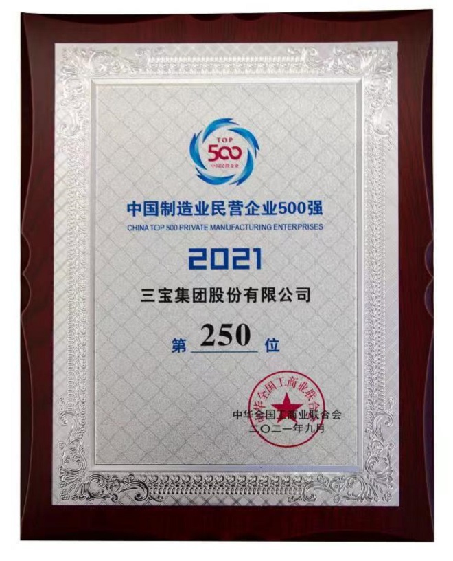 正是因為二十多年來始終堅持高標準的品質要求,三寶集團頻獲殊榮,2021年,公司蟬聯“中國製造業企業500強”“中國民營企業500強”“福建省百強企業”,先後獲得“國家高新技術企業”“國家認可實驗室”“全國綠色工廠”“中國馳名商標”“全國守合同、重信用企業”“2020年度-2021年度福建省重點工程推薦品牌”“2020-2021年度全國帶鋼鋼廠優質品牌”等榮譽,不斷擴大品牌影響力。