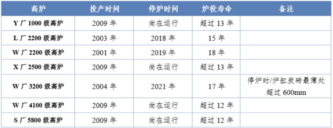 03 采用中冶南方爐缸長壽技術的高爐爐缸運行情況良好,典型實例如下: