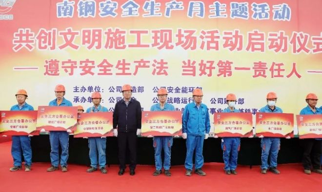 6月13日,南鋼舉行“共創安全文明施工現場”活動啟動儀式,旨在加強施工現場安全管理,牢固樹立安全發展理念。