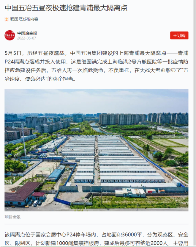 上海青浦P24區隔離點項目