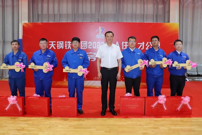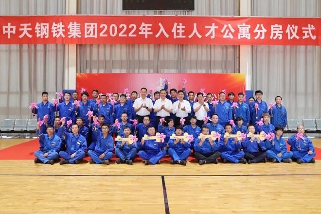 7月27日上午,中天鋼鐵舉行2022年入住人才公寓分房儀式,該集團董事局主席、總裁、黨委書記董才平為41位新住戶發放鑰匙和新房禮包。