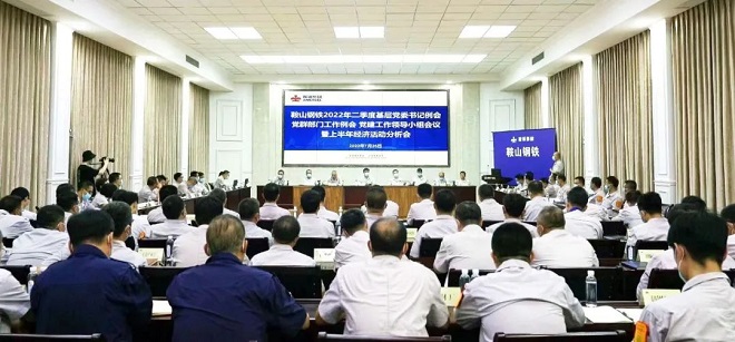 7月26日,鞍山鋼鐵召開2022年二季度基層黨委書記例會、黨群部門工作例會、黨建工作領導小組會議暨上半年經濟運營分析會,總結上半年工作,分析存在問題,研判當前形勢,部署下半年任務。