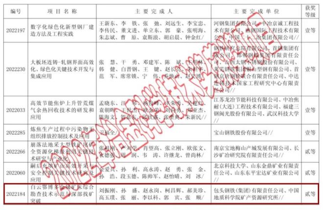 2022年冶金科學技術獎公布 包鋼集團3個項目獲獎