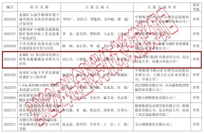 “金屬礦24米台階穿孔和大密集係數爆破技術研究與應用”項目榮獲三等獎
