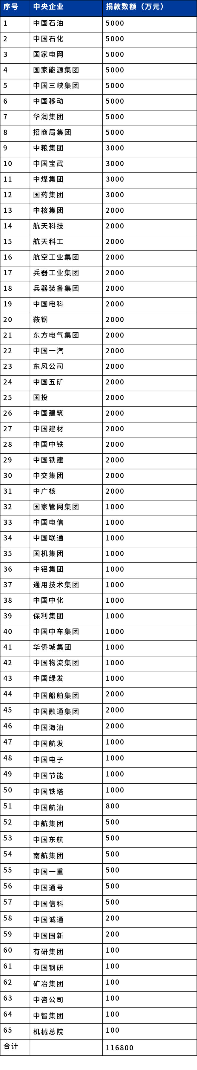 ▼中央企業捐款名單