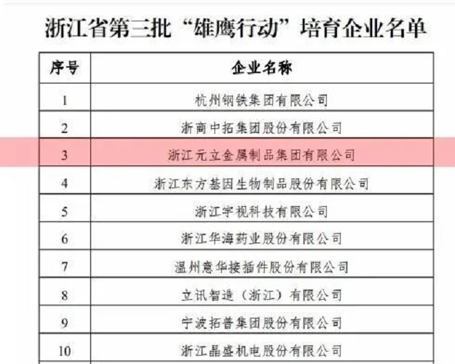 近日,浙江省工業轉型升級領導小組公布27家省第三批“雄鷹行動”培育企業名單,元立集團榜上有名。