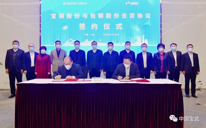 12月16日(ri)上(shang)午(wu),寶(bao)鋼(gang)股(gu)份(fen)與(yu)包(bao)鋼(gang)股(gu)份(fen)在(zai)寶(bao)鋼(gang)股(gu)份(fen)技(ji)術(shu)中(zhong)心(xin)簽(qian)署(shu)合(he)資(zi)協(xie)議(yi),雙(shuang)方(fang)將(jiang)共(gong)同(tong)出(chu)資(zi)成(cheng)立(li)鋼(gang)管(guan)平(ping)台(tai)公(gong)司(si)。此(ci)舉(ju)旨(zhi)在(zai)提(ti)升(sheng)鋼(gang)管(guan)產(chan)業(ye)集(ji)中(zhong)度(du)與(yu)競(jing)爭(zheng)優(you)勢(shi),探(tan)索(suo)鋼(gang)管(guan)產(chan)業(ye)運(yun)營(ying)新(xin)模(mo)式(shi)。寶(bao)武(wu)黨(dang)委(wei)常(chang)委(wei),寶(bao)鋼(gang)股(gu)份(fen)黨(dang)委(wei)書(shu)記(ji)、董事長鄒繼新,包鋼集團黨委書記、董事長魏栓師出席簽約儀式。