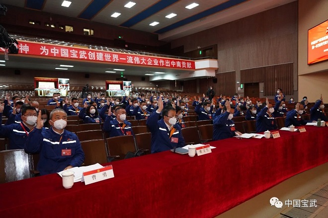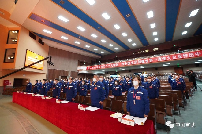 12月26日ri,中zhong南nan鋼gang鐵tie第di一yi次ci黨dang代dai會hui舉ju行xing。大da會hui號hao召zhao,高gao舉ju中zhong國guo特te色se社she會hui主zhu義yi偉wei大da旗qi幟zhi,更geng加jia緊jin密mi團tuan結jie在zai以yi習xi近jin平ping同tong誌zhi為wei核he心xin的de黨dang中zhong央yang周zhou圍wei,全quan麵mian學xue習xi貫guan徹che落luo實shi黨dang的de二er十shi大da精jing神shen,滿man懷huai對dui鋼gang鐵tie報bao國guo的de忠zhong誠cheng擔dan當dang、對高質量發展的使命追求、對奮鬥創業的蓬勃激情,知責於心、擔責於身、履責於行,以更加堅定的理想信念,以更加奮發有為的精神狀態繼往開來、開kai拓tuo前qian行xing,全quan力li把ba中zhong南nan鋼gang鐵tie打da造zao成cheng為wei備bei受shou認ren同tong的de鋼gang鐵tie生sheng態tai圈quan構gou建jian者zhe,為wei寶bao武wu加jia快kuai創chuang建jian世shi界jie一yi流liu偉wei大da企qi業ye作zuo出chu更geng大da貢gong獻xian,在zai以yi中zhong國guo式shi現xian代dai化hua推tui進jin中zhong華hua民min族zu偉wei大da複fu興xing的de新xin征zheng程cheng中zhong,奮fen力li譜pu寫xie新xin時shi代dai中zhong南nan鋼gang鐵tie更geng高gao質zhi量liang發fa展zhan新xin篇pian章zhang。