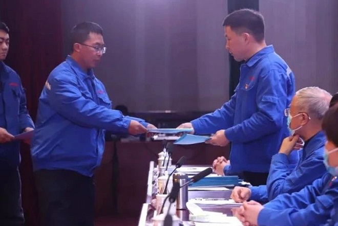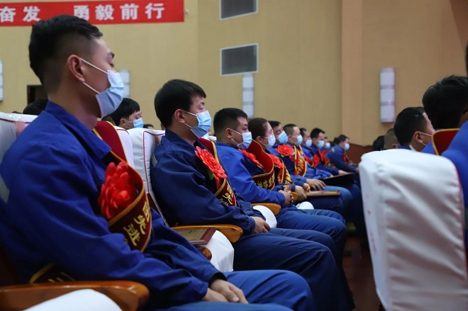 會議在莊嚴的國歌聲中拉開帷幕。會議對8個先進單位、53個先進集體、6名勞動模範、27名生產標兵、1名卓越管理者、4名優秀管理者進行了現場表彰,集團領導向獲獎者頒發了獎牌。