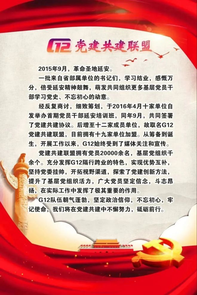 他說,G12黨建共建聯盟信念堅定、團結緊密、充滿活力、不斷創新、生命力強、反響很好,9年來不斷穩步發展,得到廣泛支持、關注和愛護。