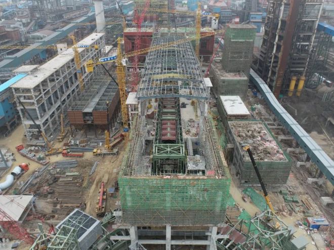 武鋼五燒結項目自開工之日算起,到今年6月30日,整體工期隻有14個月,開創了燒結施工領域最短工期,這其中還經曆了去年年底不可抗力因素導致的施工效率受限。