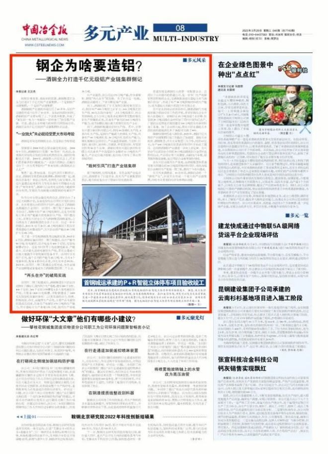 按照甘肅省委、省政府的部署,酒鋼集團正在全力打造2個千億元級產業鏈集群,一個是鋼鐵產業鏈集群,一個是鋁產業鏈集群。