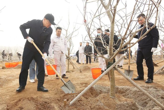 春回大地萬物蘇,植樹添綠正當時。4月11日上午,鞍鋼集團黨委書記、董事長譚成旭,黨委常委、總會計師謝峰,黨委常委、副總經理徐世帥來到“雙鞍”共建綠色礦山複墾示範園植樹點,同幹部職工一起參加2023年鞍鋼集團總部春季義務植樹活動,種下片片綠色,共建美麗鞍鋼。