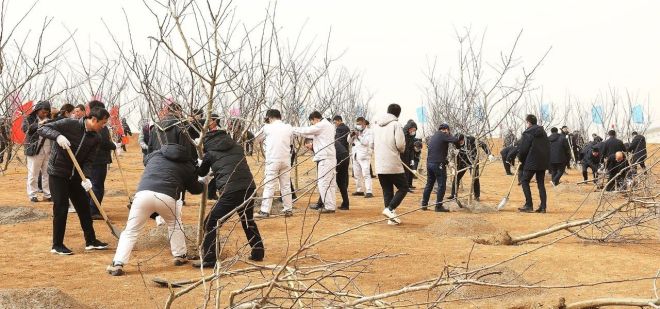 綠色是美麗鞍鋼的底色,也是高質量發展新鞍鋼的成色。來到植樹點,譚成旭等領導和參加植樹的幹部職工一起挖土造坑、培土圍堰、提水澆灌……在料峭的春風中,現場一派繁忙火熱的勞動景象。一番勞作後,山楂樹等新樹苗整齊排列、昂然挺立,與遠處早前栽下已萌生簇簇新綠的杏樹和銀杏樹,一起在春風中搖曳,顯得更加生機盎然。