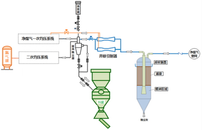 針(zhen)對(dui)回(hui)收(shou)均(jun)壓(ya)煤(mei)氣(qi)對(dui)淨(jing)煤(mei)氣(qi)管(guan)網(wang)造(zao)成(cheng)壓(ya)力(li)衝(chong)擊(ji)及(ji)除(chu)塵(chen)效(xiao)率(lv)低(di)的(de)問(wen)題(ti),中(zhong)冶(ye)京(jing)誠(cheng)研(yan)製(zhi)了(le)組(zu)合(he)式(shi)頂(ding)進(jin)頂(ding)出(chu)幹(gan)式(shi)除(chu)塵(chen)設(she)備(bei),解(jie)決(jue)了(le)均(jun)壓(ya)煤(mei)氣(qi)回(hui)收(shou)壓(ya)力(li)波(bo)動(dong)大(da)、氣流周期性瞬時流量大等多重問題,延長布袋除塵器壽命約20%。