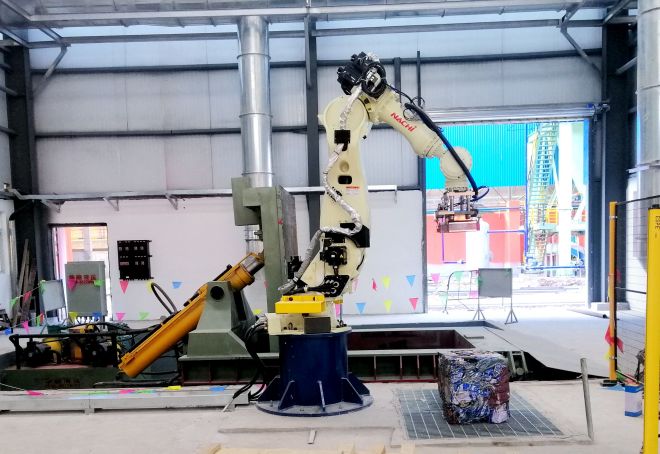 廢棄鐵質包裝物加工線。