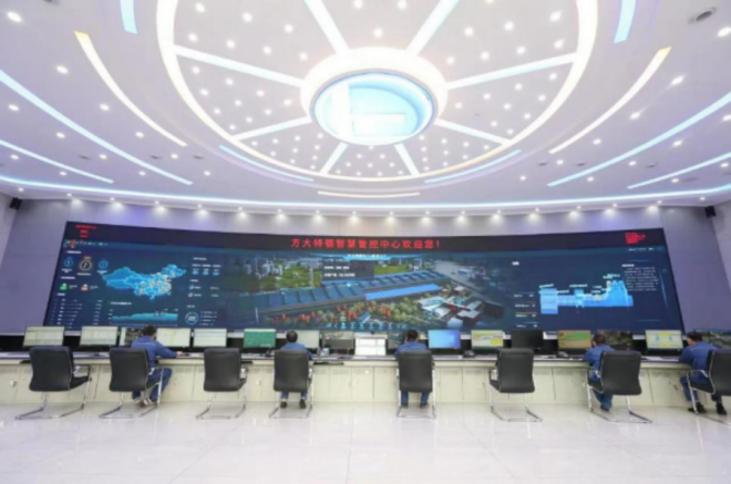方大特鋼員工在企業新建的智慧管控中心內工作